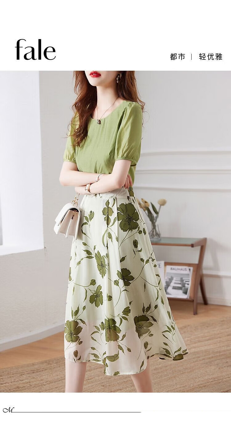 商品名称:罗蒙2023年夏季新款优雅时尚舒适减龄女士气质百搭修身显瘦两件套装女 绿色 XL
