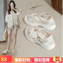 商品名称:歌莎莲娜上班凉鞋女防滑2023夏季新款真皮包头侧空高跟鞋女尖头扣带凉皮鞋 黑色 35