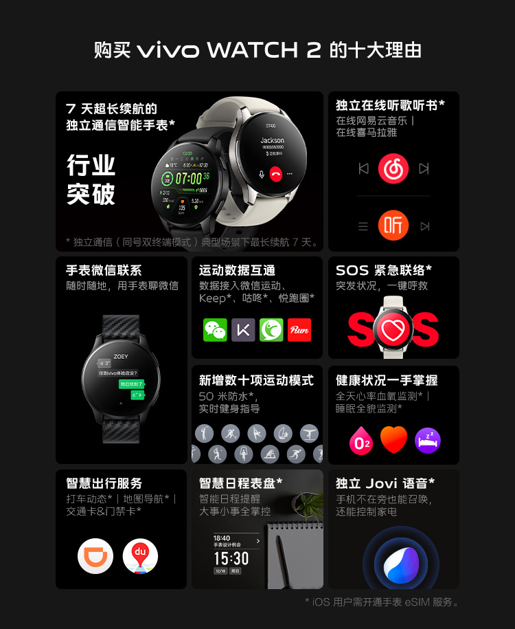 vivo WATCH 2 原力黑 智能手表 血氧监测 智能运动 SOS紧急联络 eSIM独立通信 强劲续航 vivo手表iqoo手表